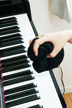 ピアノを途中で辞めることになり、ブランクがあいたとしても、またはじめた時に変な指の形にならないよう レッスンのこだわりを一部ご紹介 指先や手首の高さなどを伝えるときに使っているレッスン道具たちです。